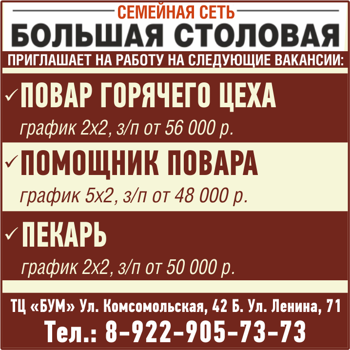 «Малина», «Вятская ресторанная компания», ООО «Виктория» - названия меняются, партнёрство с газетой «Рабочие места» остаётся. Уникальный подход к работодателям, система приятных бонусов и скидок для постоянных клиентов являются дополнительным стимулом в размещении. «Рабочие места» - это компания, доказавшая свою состоятельность и компетентность.