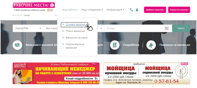 Сервис создания резюме находится в рубрике «Ищу Работу»: