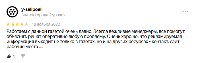 Реальные отзывы и количество постоянных клиентов наглядно доказывают эффективность сотрудничества с ресурсами газеты «Рабочие места». Здесь Вы можете познакомиться с рекомендациями: https://www.gazeta-rm.ru/company/references/organizations/